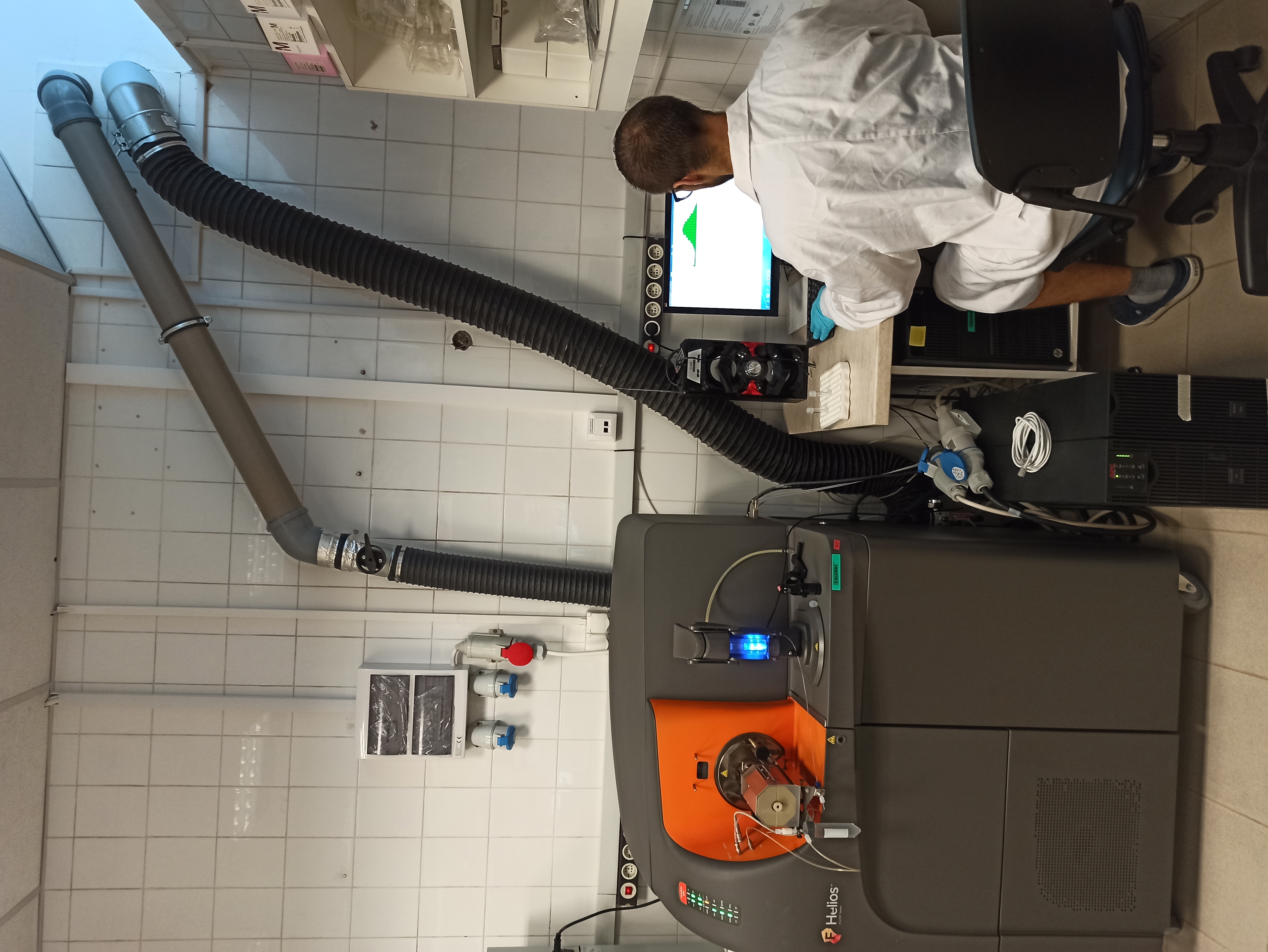 1. Single cell mass cytometer (Helios, Fluidigm): a special cytometer with 135 channels, antibodies are labeled with stable heavy metal isotopes. Currently 42 cell surface or intracellular markers can be studied. Complex bioinformatic analysis (Cytobank, Astrolabe, Maxper Pathsetter) is available