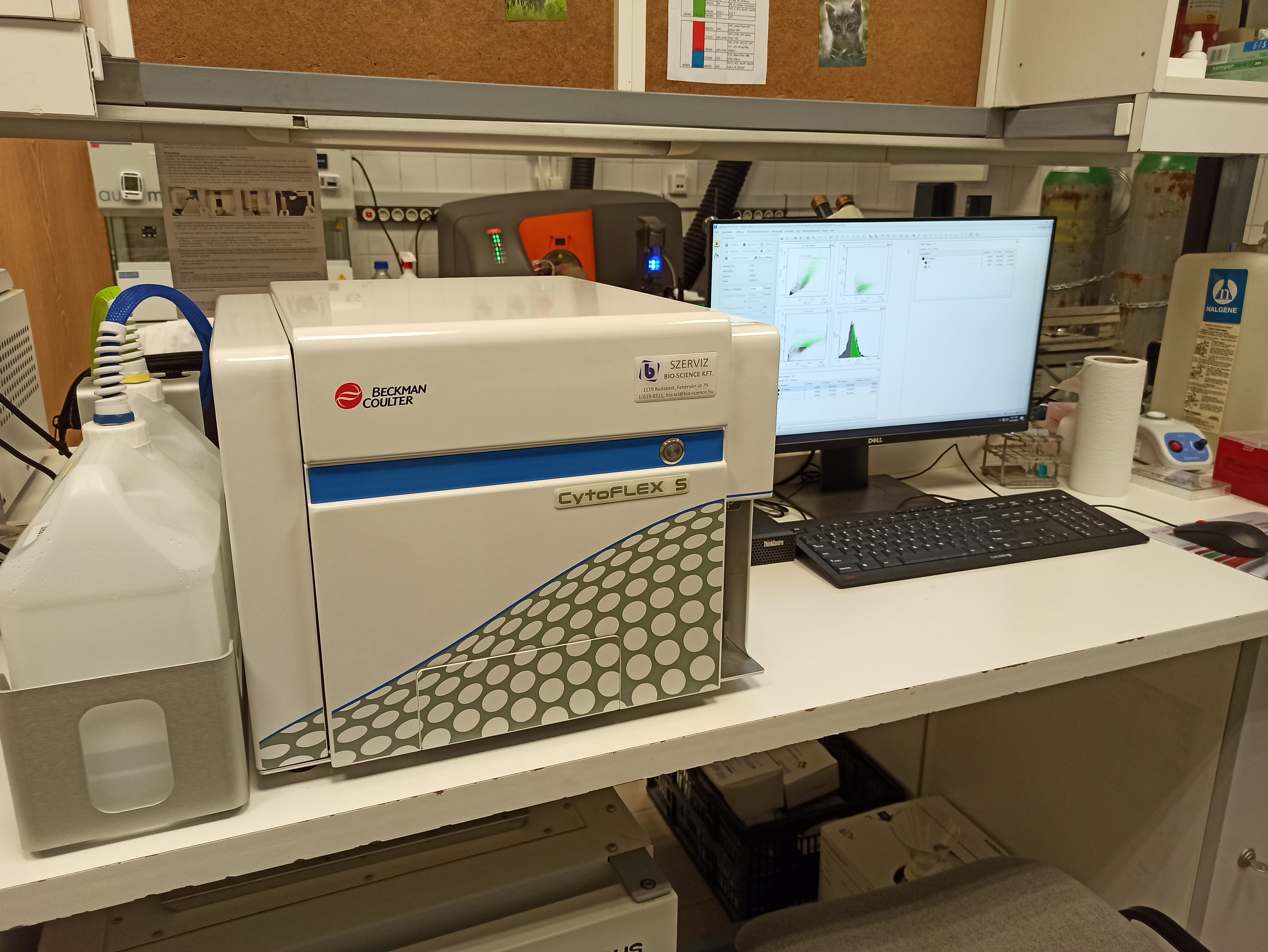 2. Beckman Coulter Cytoflex S fluorescent flow cytometer analyzer equipped with 4 lasers (405 nm, 488 nm, 561 nm, 638 nm) and 96-well plate microtiter plate adapter. Thirteen proteins, markers can be measured simultaneously, plus the SSC and FSC channels. The Kaluza and Cytexpert software are available for data analysis.