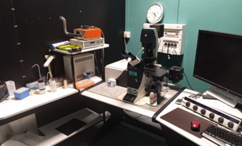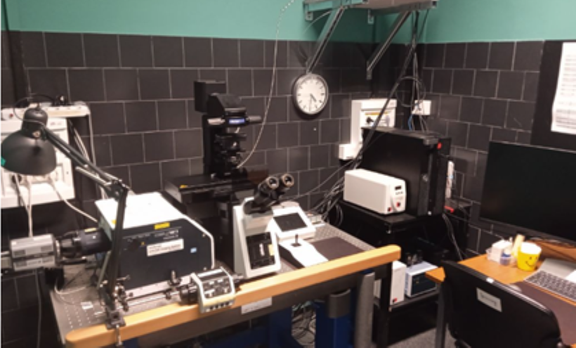 The Nikon C1 Microscope has 3 laser lines (405, 488 and 543 nm) and 6 objectives (4x/0.13, 10x/0.3, 20x/0.5, 40x/0.75, 60x/1.4 OIL and 100x/1.3 OIL). The microscope is suitable for bright field, fluorescence, and 3-channel confocal imaging.