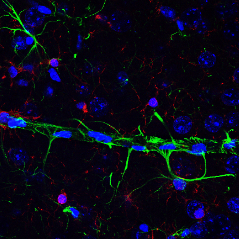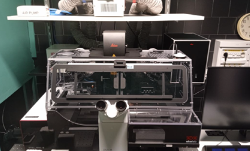Our Leica Stellaris 8 Confocal Miscroscope is suitable for transmission imaging (with laser scanning, non-confocal), bright field illumination and fluorescence imaging (DAPI, FITC, FITC LP, TXR cubes) with camera, 6 objectives (10x/0.3, 20x/0.4, 20x/0.75, 40x/0.8, 40x/1.25 GLYC and 63x/1.4 OIL), confocal fluorescence imaging modes (Tau sense and FALCON) are available from 440 to 790 nm excitation. Long term measurements are supported by the Adaptive Focus Control and an Okolab Incubator (temperature, CO2).