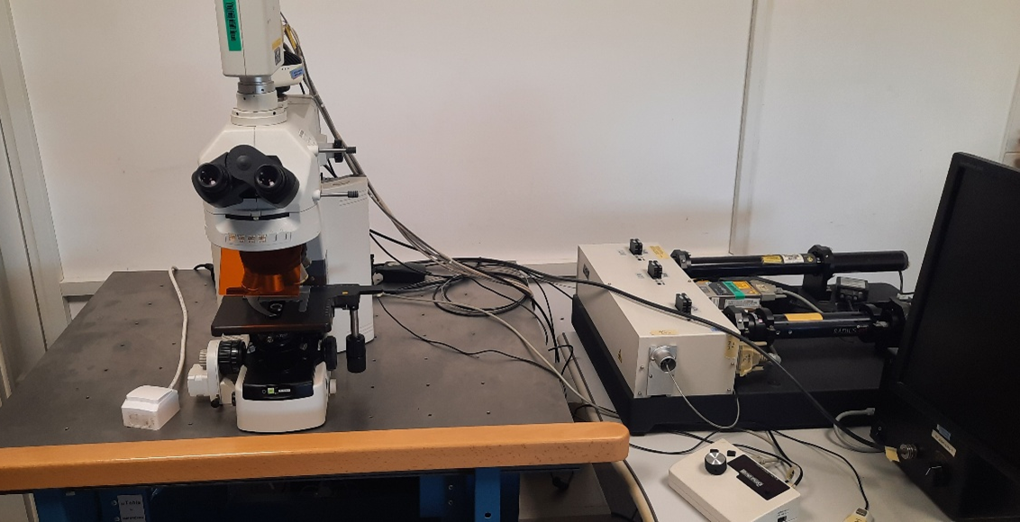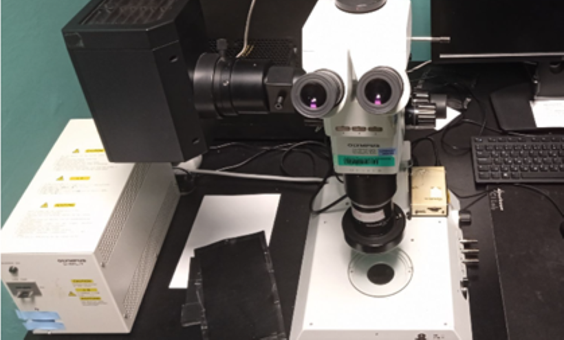 The Olympus FV1000 Confocal Microscope has 6 laser lines (405, 458, 488, 515, 543 and 633 nm), and 6 objectives (10x/0.4, 20x/0.75, 40x/1.3 OIL, 60x/1.35 OIL, 40x/0.8 W and 60x/0.9 W). Available main dichroic beam splitters: BS20/80, DM405/488, DM/488/543/633, DM458/515 and DM 405/488/543. Imaging method: scanning confocal, stimultaneous 3 color detection, 2 independent spectral detectors + 1 additional PMT with emission filters + transmission mode.