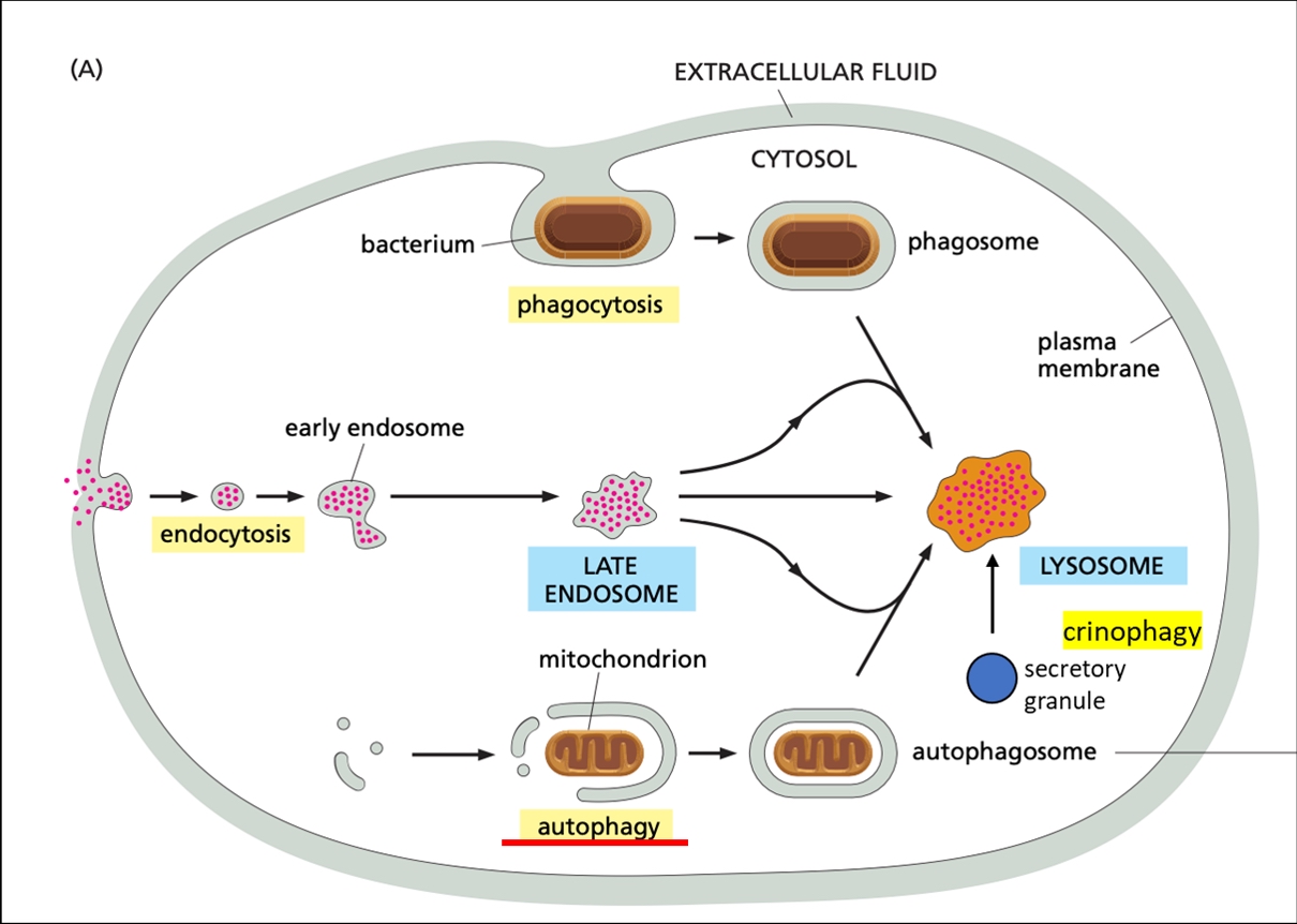 Our recent projects primarily focus on three major lyosomal degradation routes: autophagy, endocytosis, and phagocytosis.